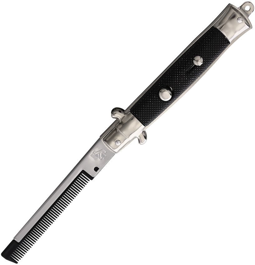 Lunghezza totale aperto 13 cm. Simpatico prodotto a scatto che al posto della lama ha un pettine.