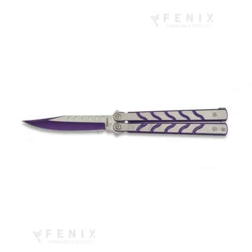 Il Butterfly ALBA 02158 Viola è un coltello balisong dal design moderno e aggressivo, con finitura bicolore argento e viola, perfetta per collezionisti e appassionati di stile urban o fantasy.