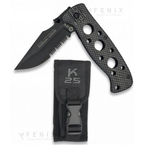 🖤 Coltello Pieghevole Tattico K25 – Alluminio Nero Carbon Look
