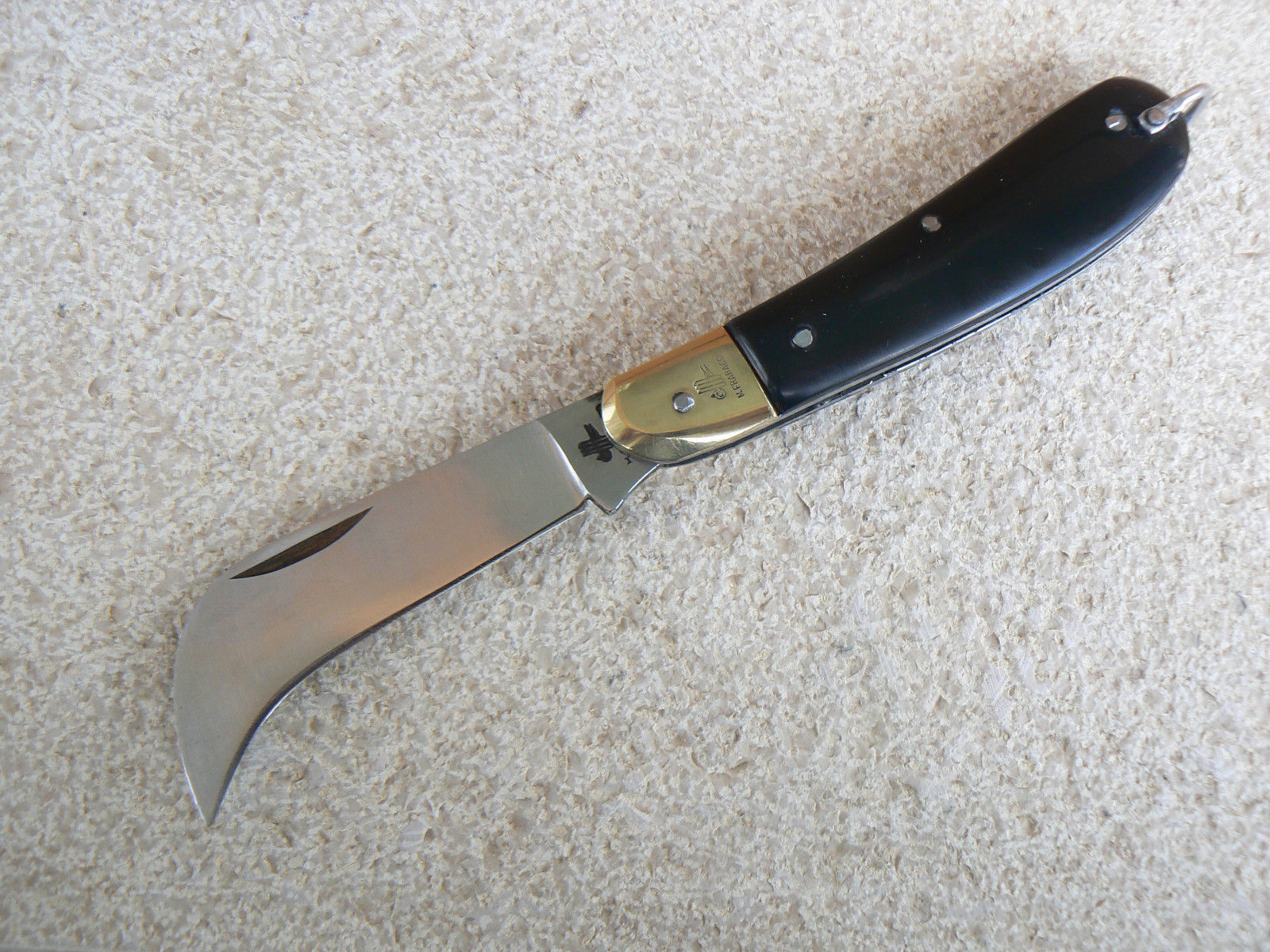 Coltello tradizionale Rocola mezzaluna manico ABS nero testina ottone knife 0535