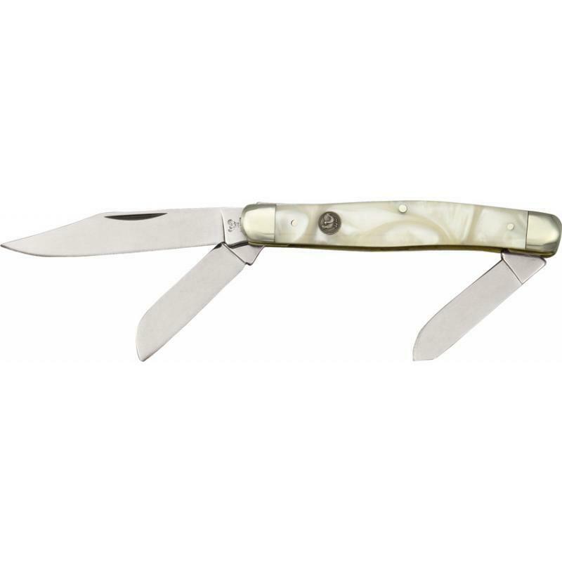 Coltello Hen & Rooster HR413CI Stockman Cracked Ice knife couteau messer navaja, chiuso misura 10cm. Tre lame di 7cm,4.5cm e 4cm in acciaio inox. Manico in composizione colore ghiaccio bolsters in nichel color argento e logo intarsiato. Made in Solingen, Germany.rif scat c