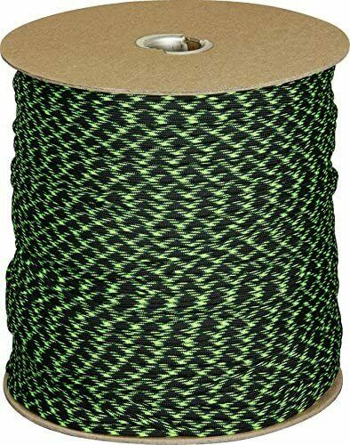 Corda Paracord Atwood Rope RG1045S Parachute Cord Decay Zombie 1000ft, corda in nylon a 7 fili, lunghezza 304mt, colore verde neon, giallo neon e nero, ideale per il campeggio, la nautica, il crabbing, i fili da bucato per interni ed esterni, le tende alla veneziana, per tende da sole e molte altre applicazioni che richiedono resistenza e durata. Made in USA. rif scat l