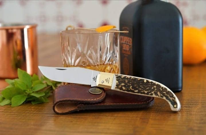 IL TRADIZIONALE COLTELLO FROSOLONESE MANICO CORNO DI CERVO T/OTTONE – SCARPERIA 20(aperto) lama in acciaio inox 420 lucidato a specchio con testina in acciaio lucido. Manico in corno di cervo. Foderino in cuoio compreso.SCARPERIA 0404/506-2CV