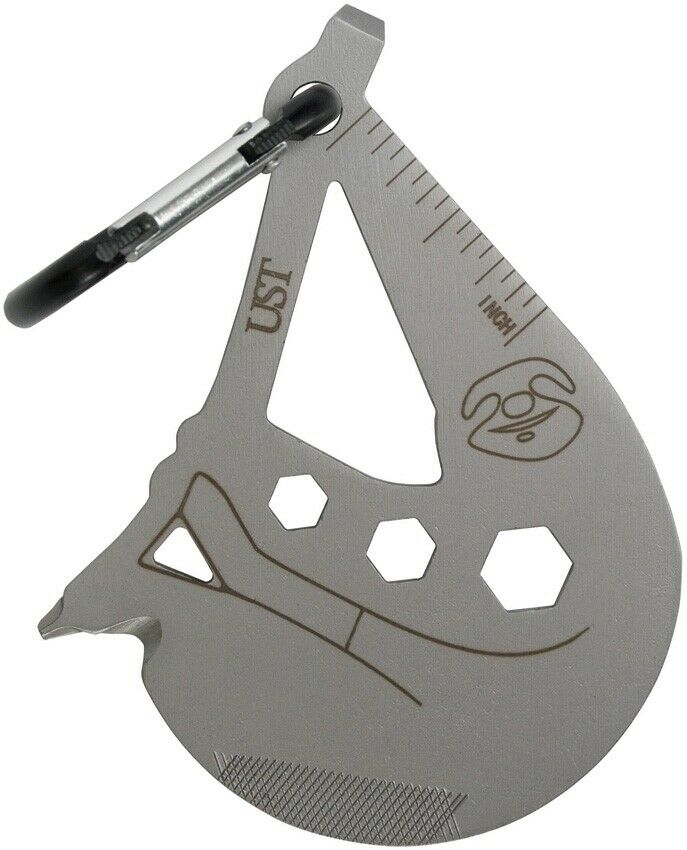 UST WG12129 Tool A Long Sloth Multitool Carabiner Moschettone. Lunghezza totale ( escluso moschettone) 7cm circa. Materiale acciaio inox, comprende: leva, chiavi esagonali, righello (1 inch), cacciavite a croce, taglia cinta e corda, lima e moschettone.rif scat 10