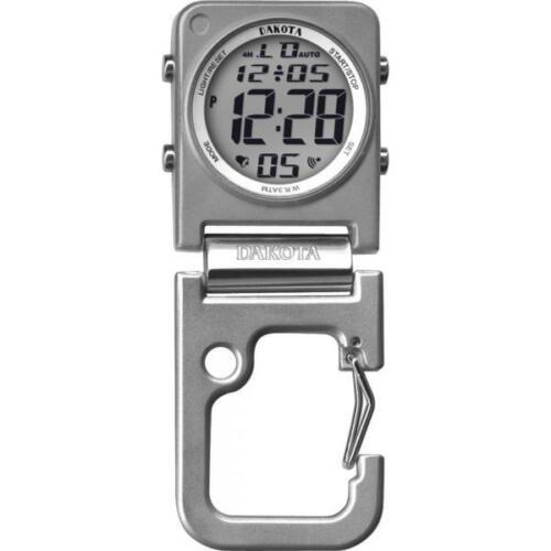 Orologio Dakota DK3089 Digiclip Square Silver. Cassa quadrata in lega con finitura color argento e quadrante tondo. Retro in acciaio. Quadrante digitale con data e giorno, luminescente con luce moonglow electro. Stop Watch. Conto alla rovescia. Dual time. Allarme con suoneria. Resistente all’acqua. Clip di aggancio in alluminio silver. Custodia in metallo.rif scat 10 e scat r