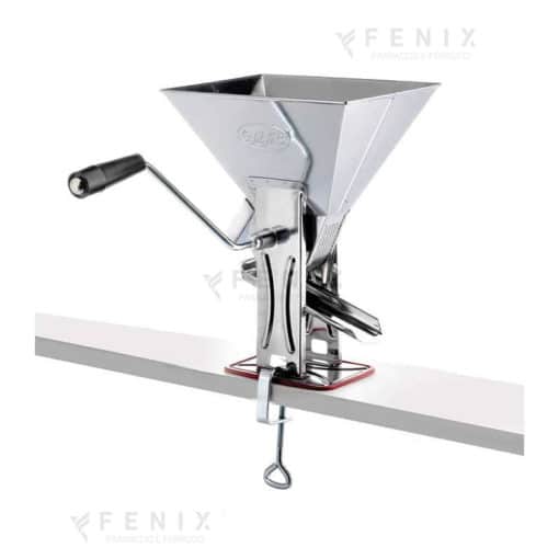 Azionamento manuale tramite manovella con impugnatura ergonomica 🖐️ che permette di spremere pomodori crudi (non cotti!) in modo fluido e senza fatica.