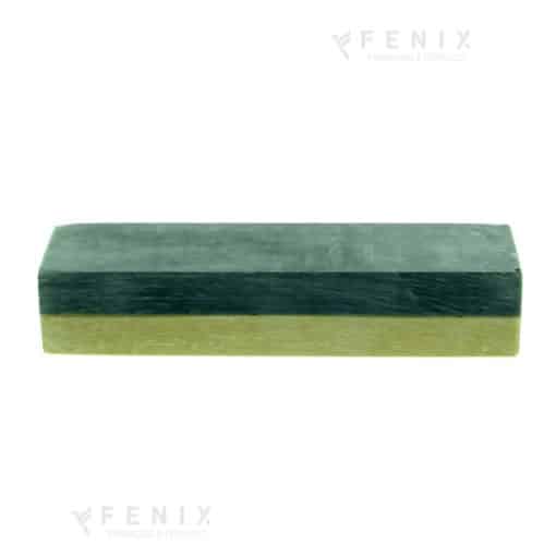 Strato superiore (grigio/verde): Coticule belga naturale – materiale abrasivo finissimo a base di granati naturali