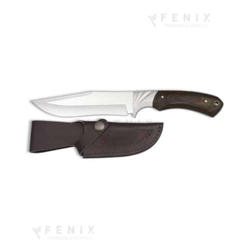 🔪 Lama fissa da 11 cm in acciaio inox satinato, con punta ricurva e gancio scuoio (gut hook) per facilitare l’apertura della pelle senza danneggiare gli organi interni