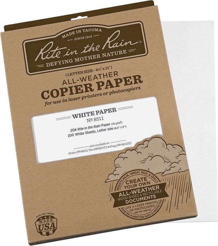 Rite in the Rain RITR8511 carta per fotocopiatrici resistente all’acqua ALL-Weather, 200 fogli bianchi 75g per stampanti laser e fotocopiatrici. Resistenti alla pioggia, al fango al sudore. Made in USA.rif scat 9